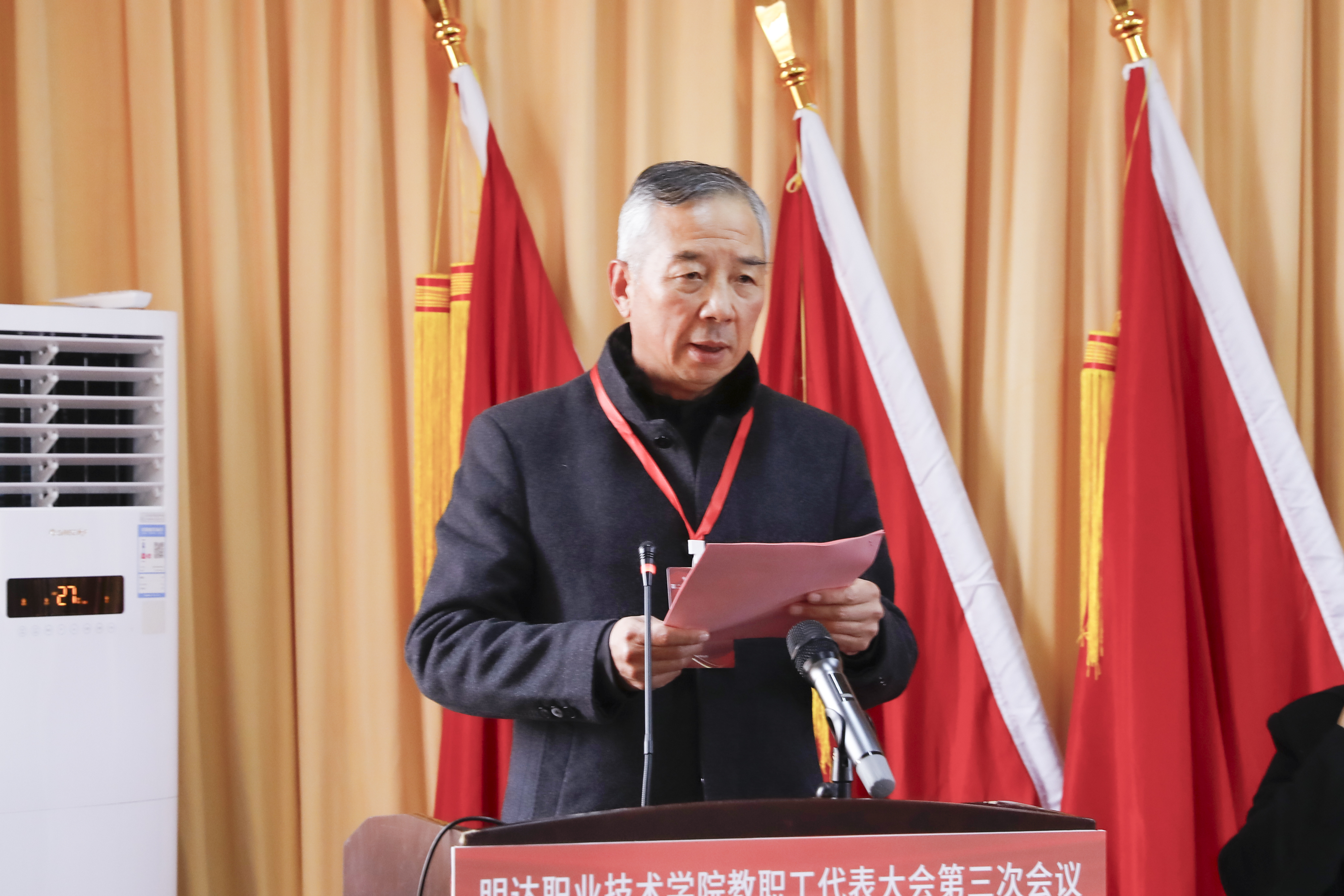 2025年12月24日下午,明达职业技术学院第二届教职工代表大会第三次会议在行政楼四楼会议室隆重举行。学校教职工代表、列席代表共聚一堂,共商学校发展大计。会议由校长助理、教务处长徐宏桂主持。